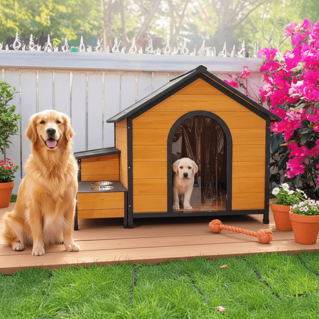 Pine Dog House with Porch for Dogs up to 66 lbs - Waterproof Outdoor Kennel Medium 48"